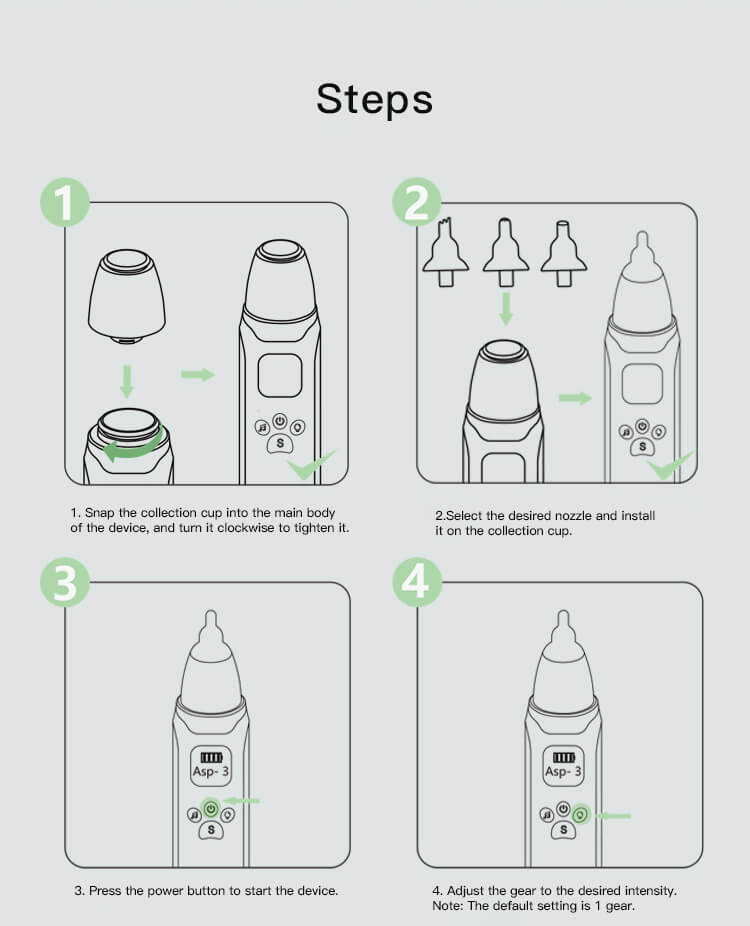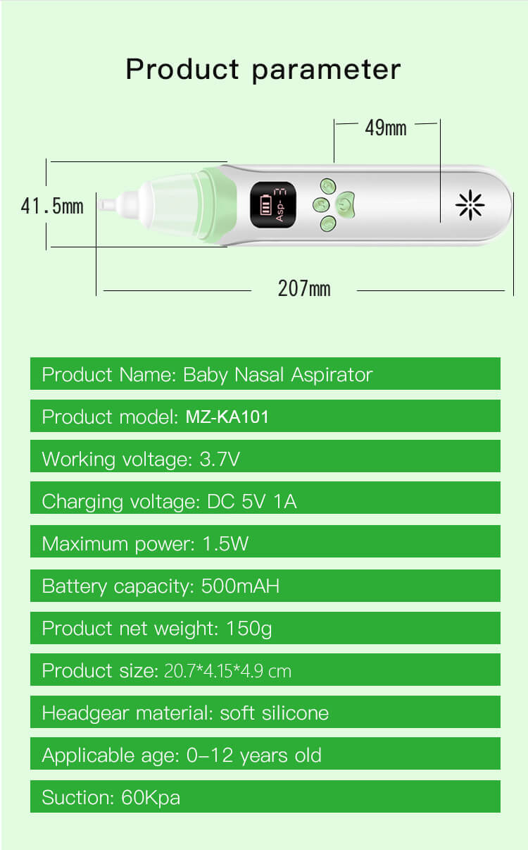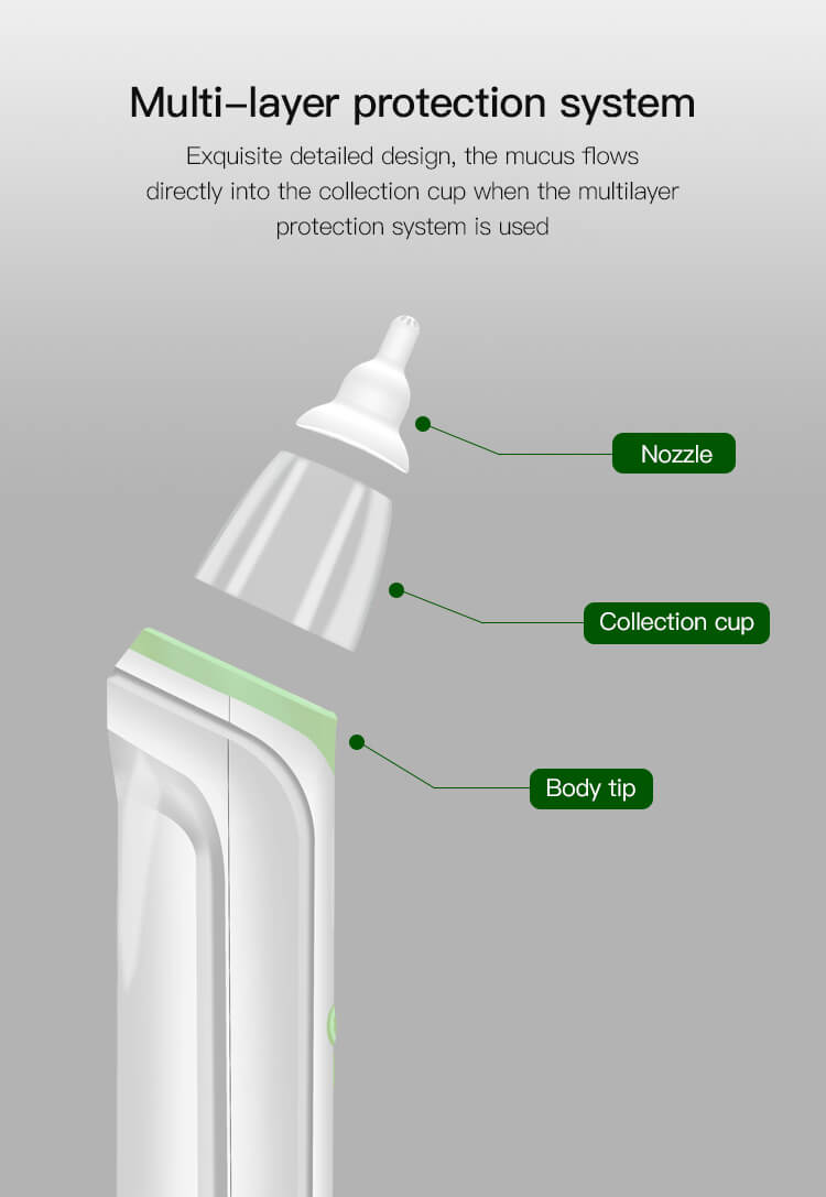 Crafted with the utmost care and attention to detail, our nasal aspirator features a gentle yet powerful suction mechanism that effectively removes mucus and congestion from your baby’s nose. The soft silicone tip ensures a comfortable experience for your little one, preventing irritation or discomfort commonly associated with traditional aspirators.