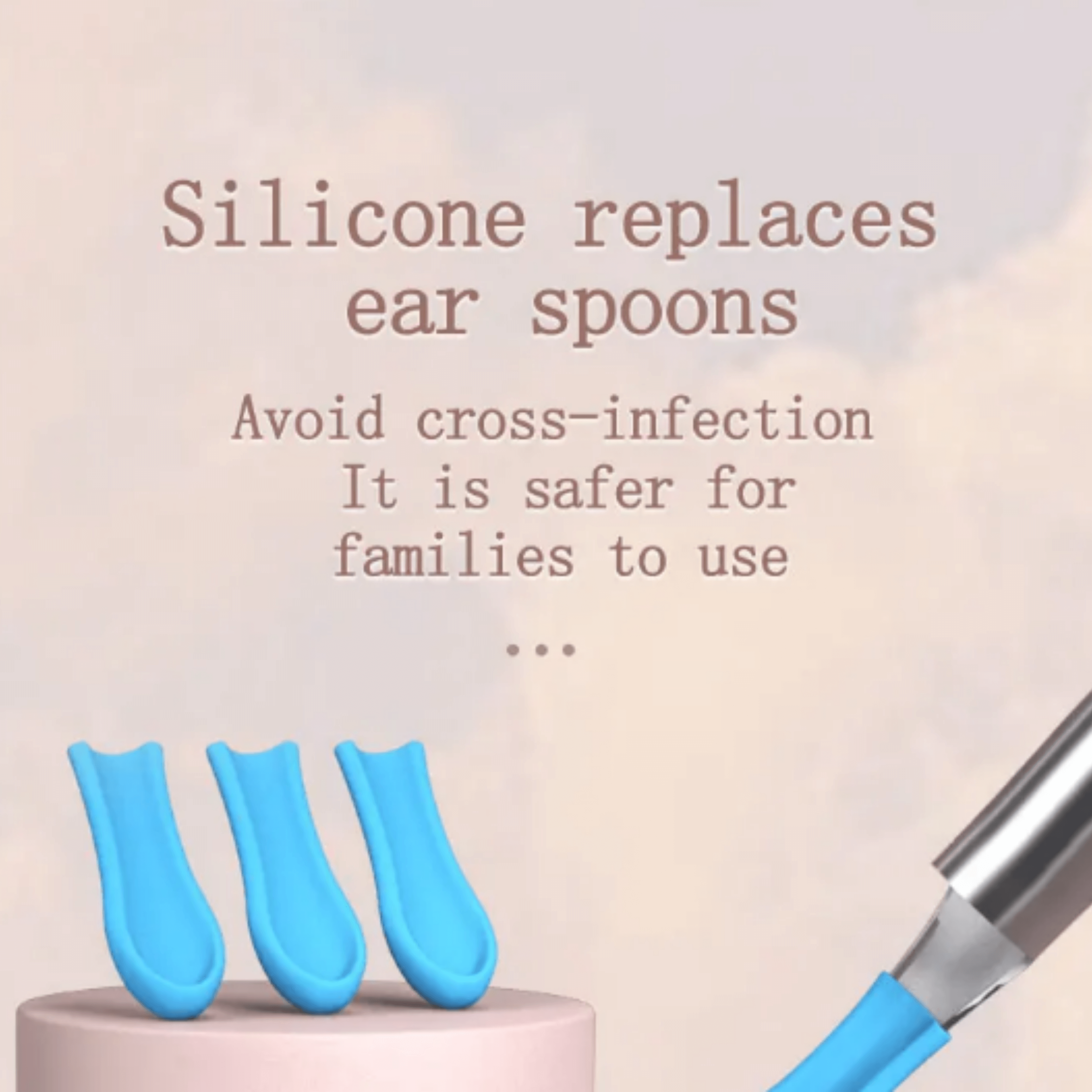 Enhance your ear cleaning experience with a metal ear spoon featuring a silicone cover and a Q-Elastic ear spoon with a spiral structure for stability and secure fixation during wax removal.