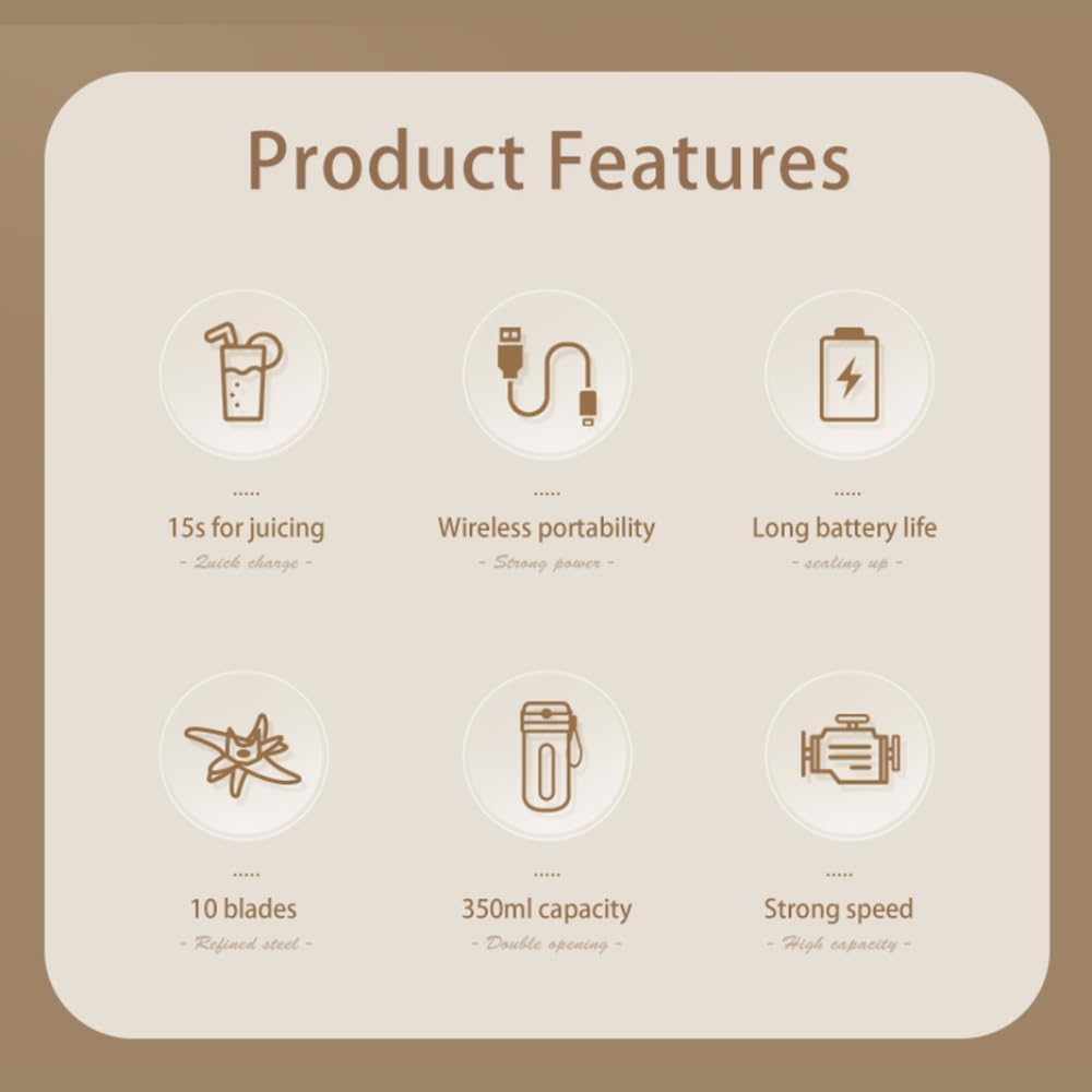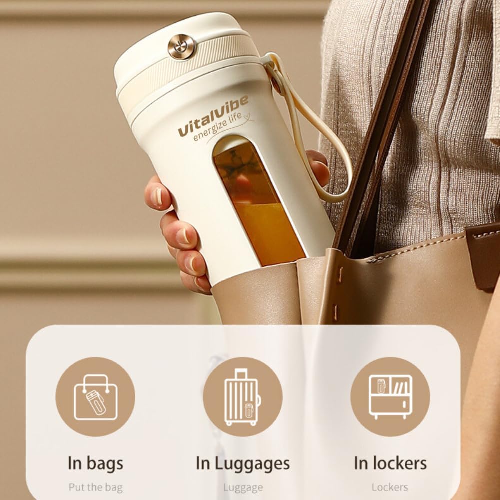 - Portable and Compact Design: The VitalVibe Portable Blender boasts a compact form factor with a 350ml capacity, making it the perfect companion for your on-the-go lifestyle. It easily fits into your bag, car cup holder, or office desk, so you can enjoy freshly blended drinks wherever you are.